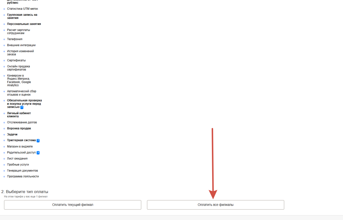 После выбора срока оплаты, система уточнит, каким способом вы хотите произвести оплату: банковской картой или с помощью расчетного счета. Как только вы произведете оплату, вся филиальная сеть будет продлена на выбранный вами период.