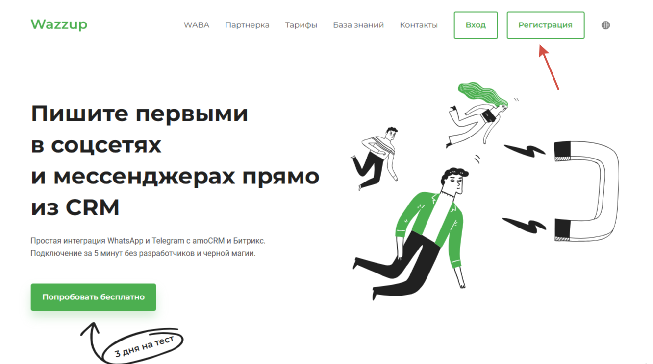 Первым шагом зарегистрируйтесь на сайте Wazzup по ссылке или войдите в личный кабинет.