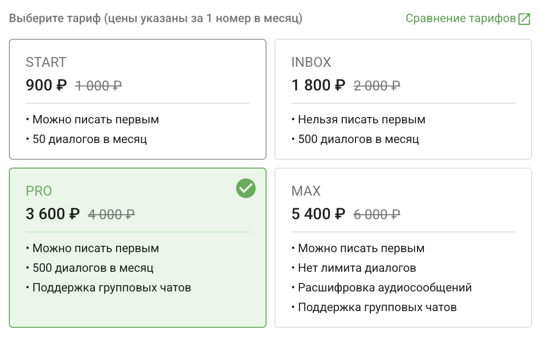 При выборе тарифа ориентируйтесь также и на лимит сообщений, который соответствует вашим задачам.