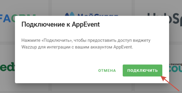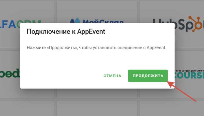 Шаг 4. Подключение интеграции с CRM AppEvent.