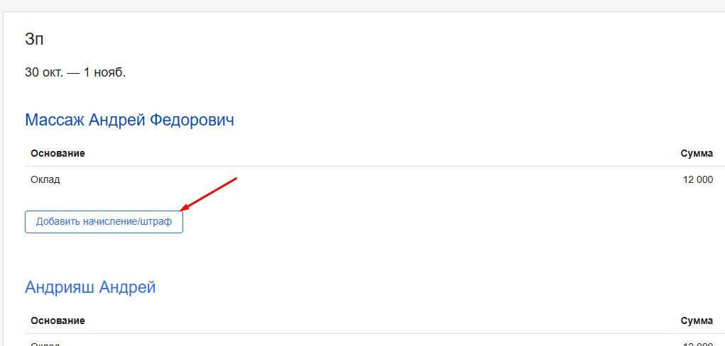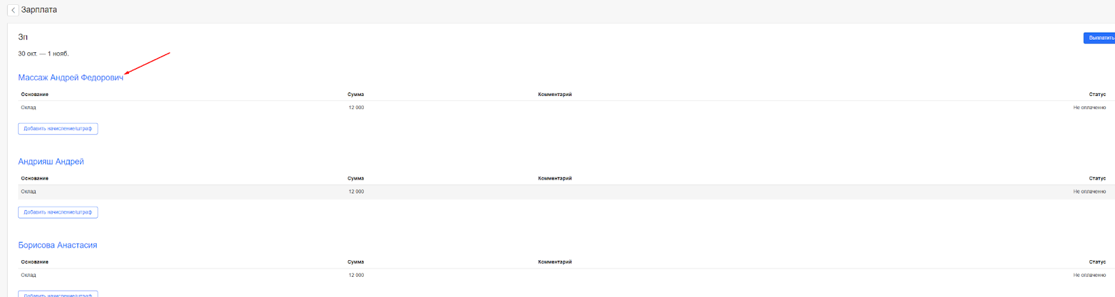 Обратите внимание, если вы добавили премию,начисление или штраф в отчёт, где зарплата уже выплачена, не забудьте нажать на кнопку «Выплатить», чтобы система их учла. В системе можно удалить штраф или начисление вне зависимости от того, когда он был добавлен.