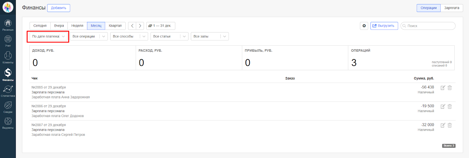 Расходы по зарплатам не отображаются по фильтру «По дате заказа», только По дате платежа».
