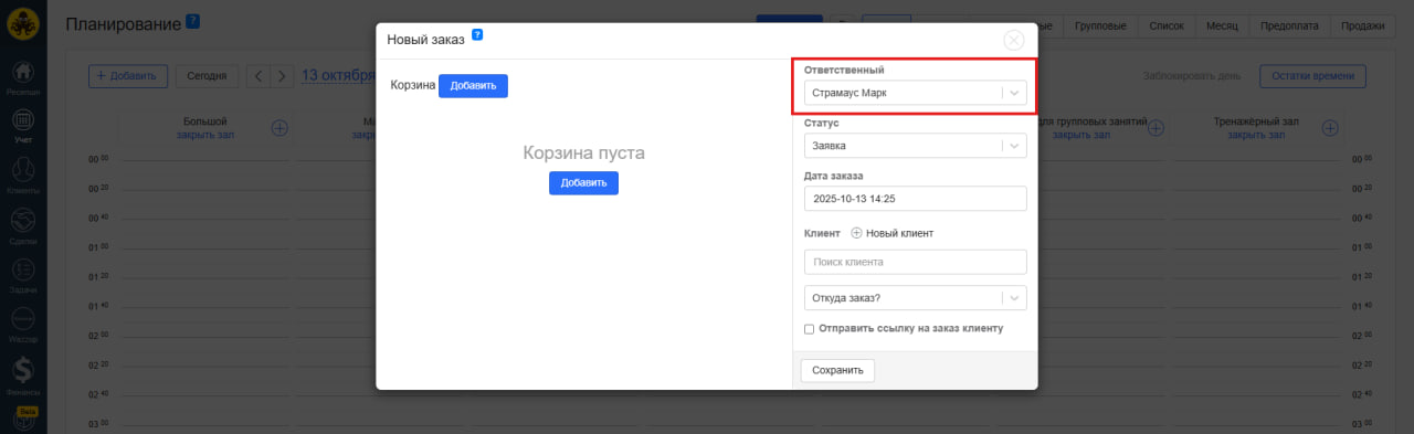 Обратите внимание, для корректного и полного подсчета, необходимо чтобы сотрудник был указан ответственным за данный заказ.