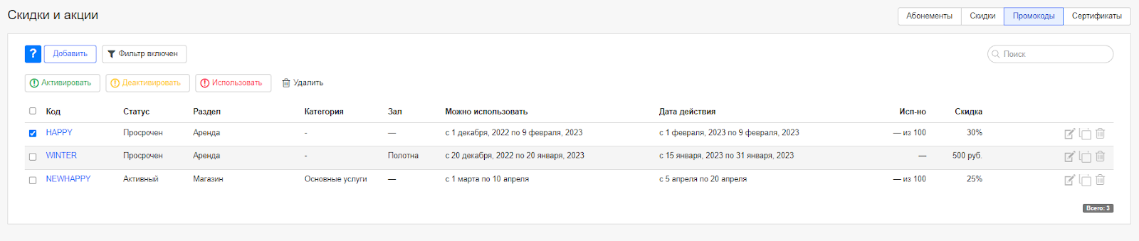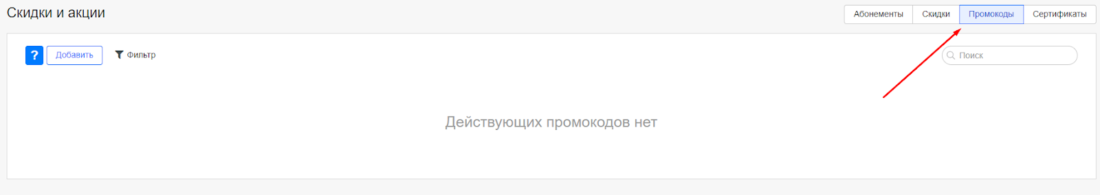 Важно: Раздел «Промокоды» доступен только на тарифах Optima и выше.