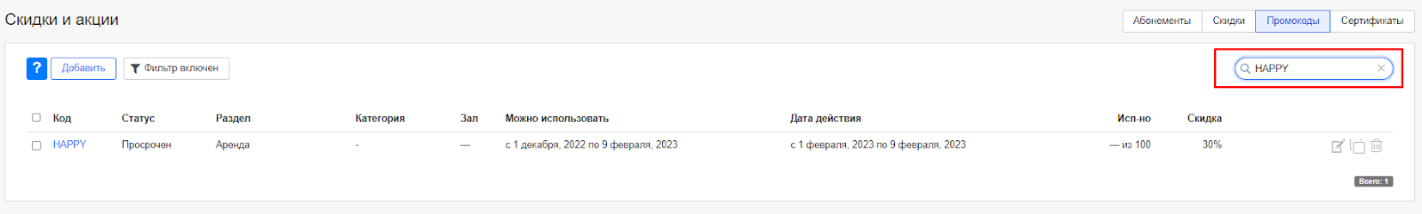 Решение: Убедитесь, что вы ищете по точному названию промокода. Поиск работает только по полному совпадению.