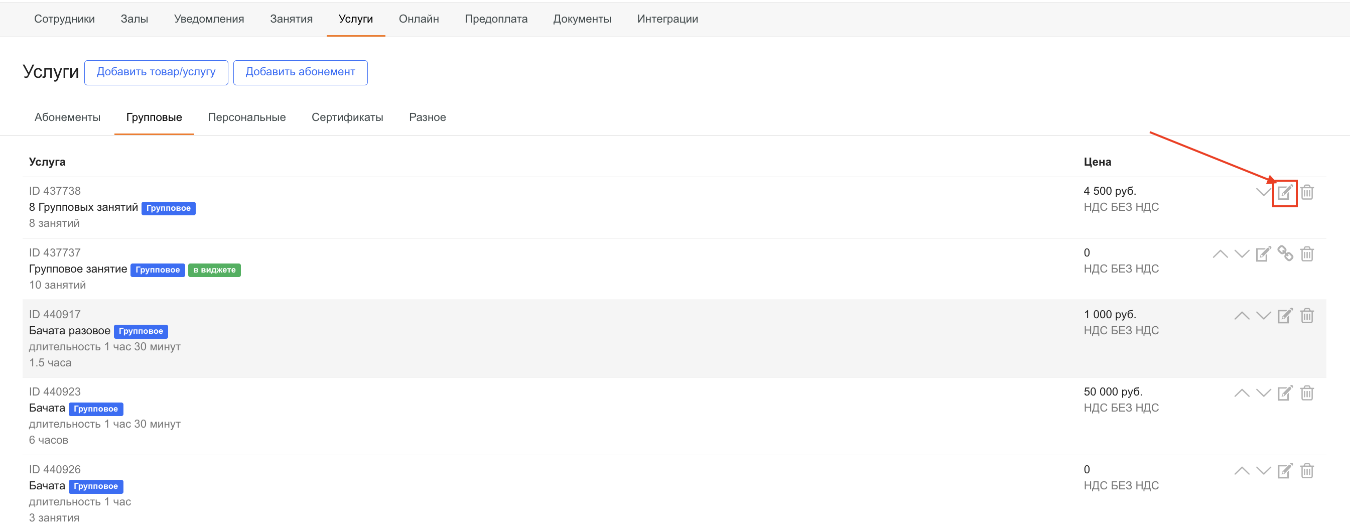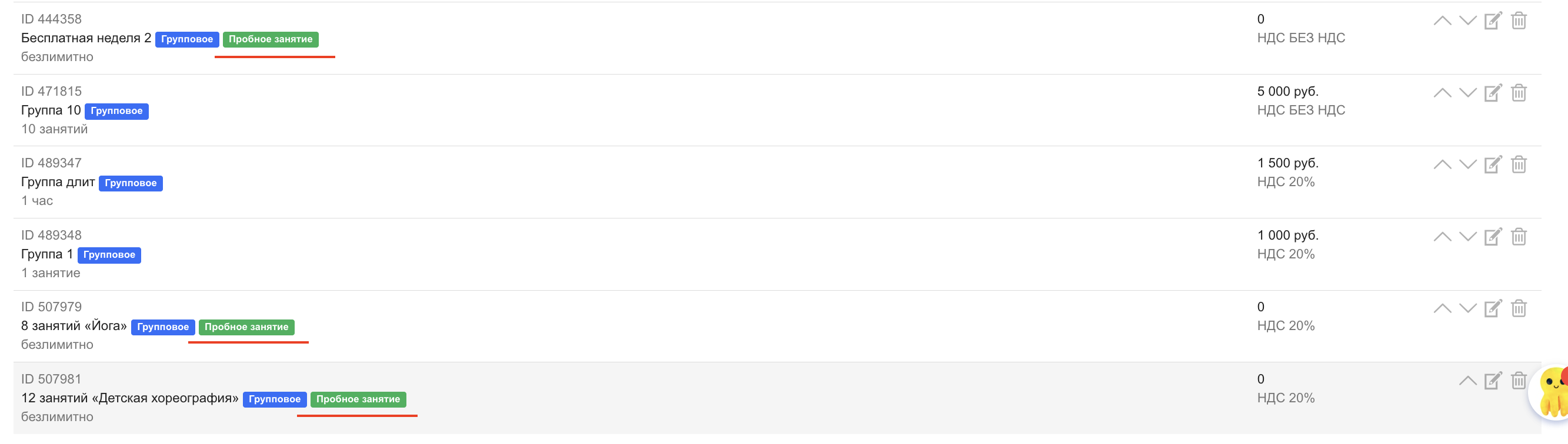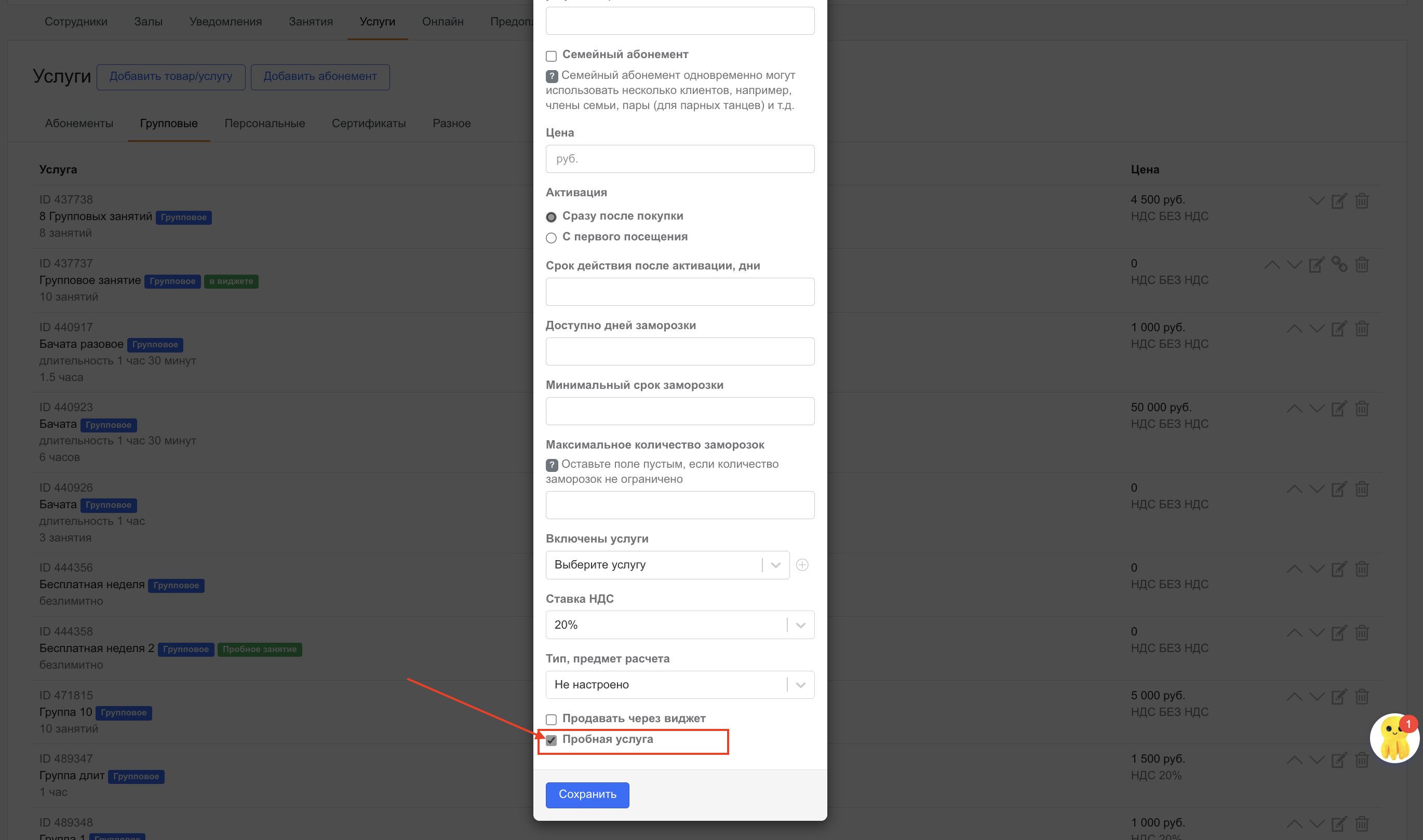 Сохраните услугу. У такой услуги появится тег «Пробное занятие».