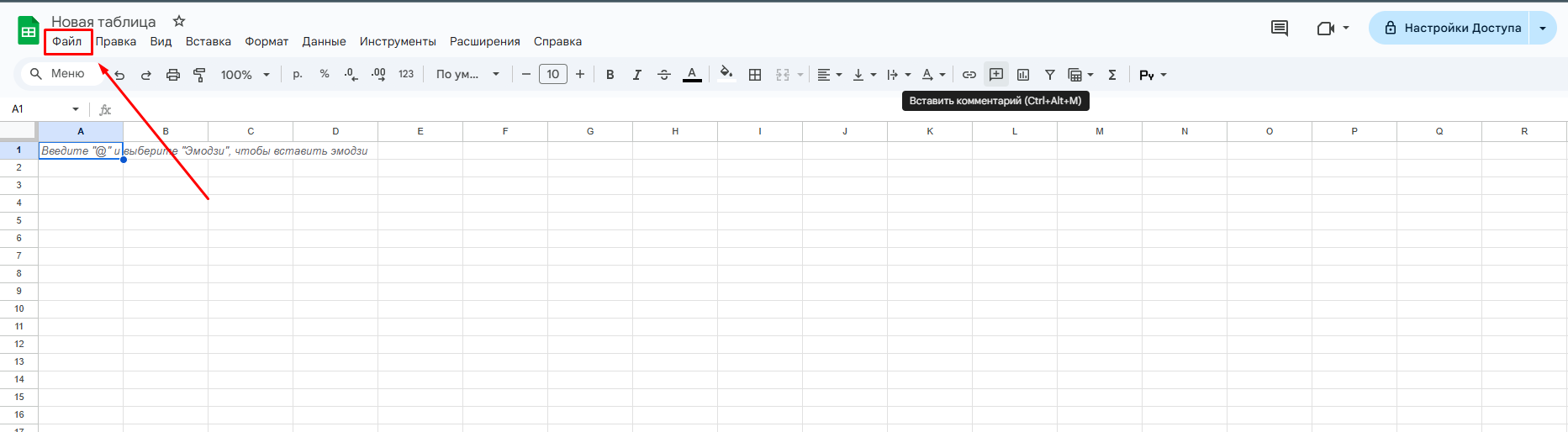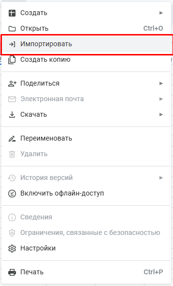 - Откройте новую таблицу → Файл → Импортировать.