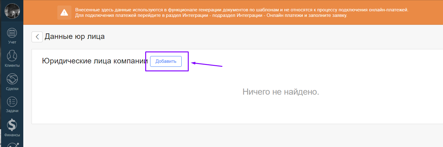 Если у вас в системе уже добавлено юридическое лицо и его данные актуальны, то переходите к следующему блоку статьи.