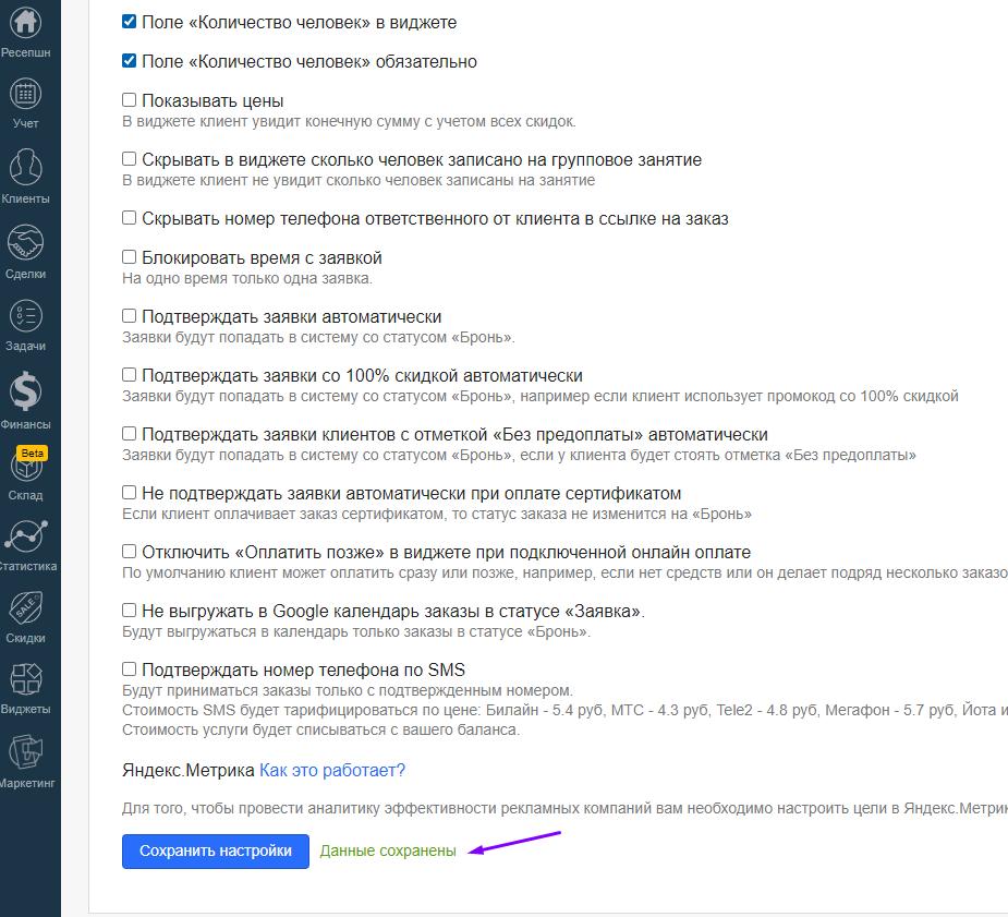 В виджете клиент сможет оставить или не оставлять своё согласие на получение рекламных рассылок (параметр НЕобязательный для клиента).
