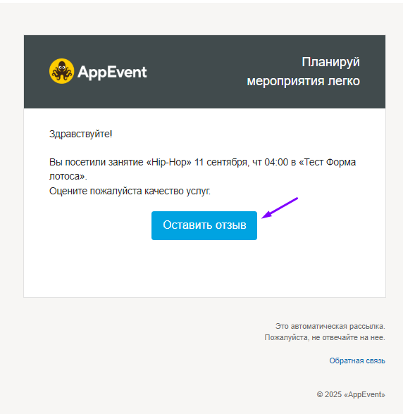 2. Параметр «Отзывы» — нажать чекбокс (галку) «Отправлять автоматически после занятия».