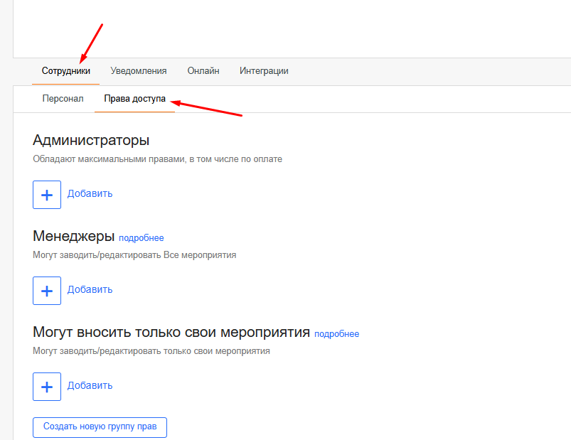 Для подробного ознакомления со всеми правами доступа и как происходит их выдача можно ознакомиться в данной статье