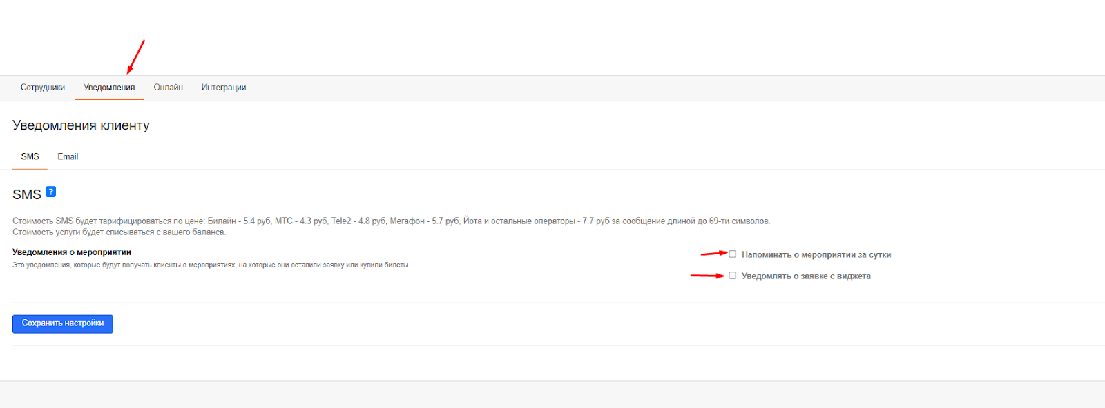 обращаем внимание, sms-уведомления платные, цена за одно уведомление формируется на основе тарификации мобильного оператора вашего клиента.
