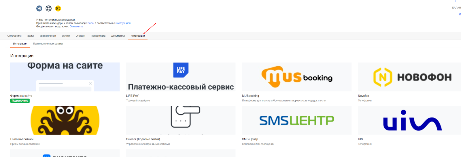 5. Настройка и подключение интеграций в разделе «Интеграции»