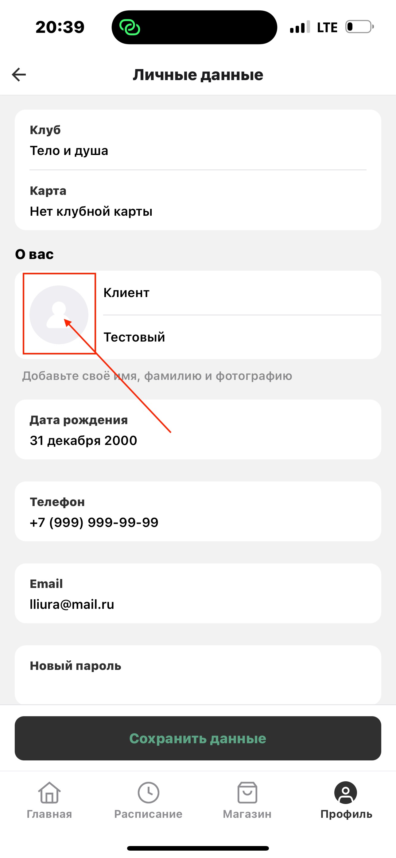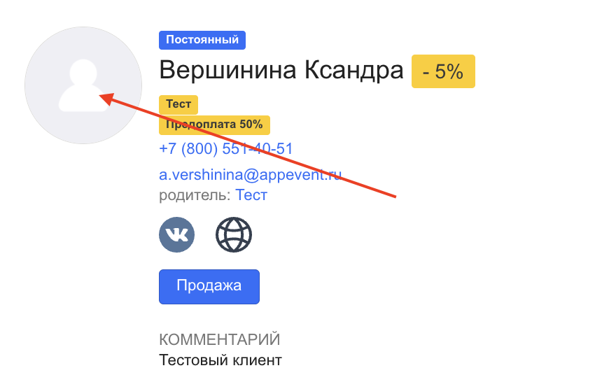 Если у клиента есть приложение, фото отобразится и там. Клиент также может изменить фото самостоятельно: Профиль → ФИО → О вас → нажать на на аватар в карточке.