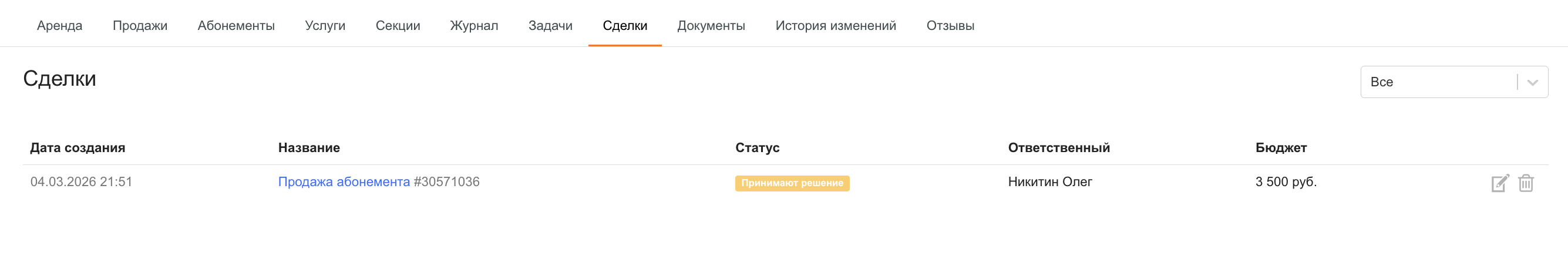 Связанные сделки — сделки , связанные с клиентом, подробнее в статье «Сделки».