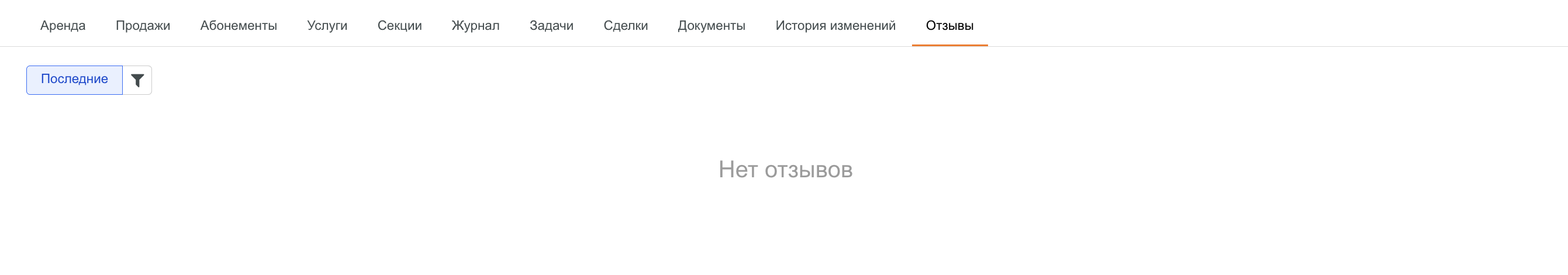 Если включён сбор отзывов, здесь отображаются отзывы клиента.