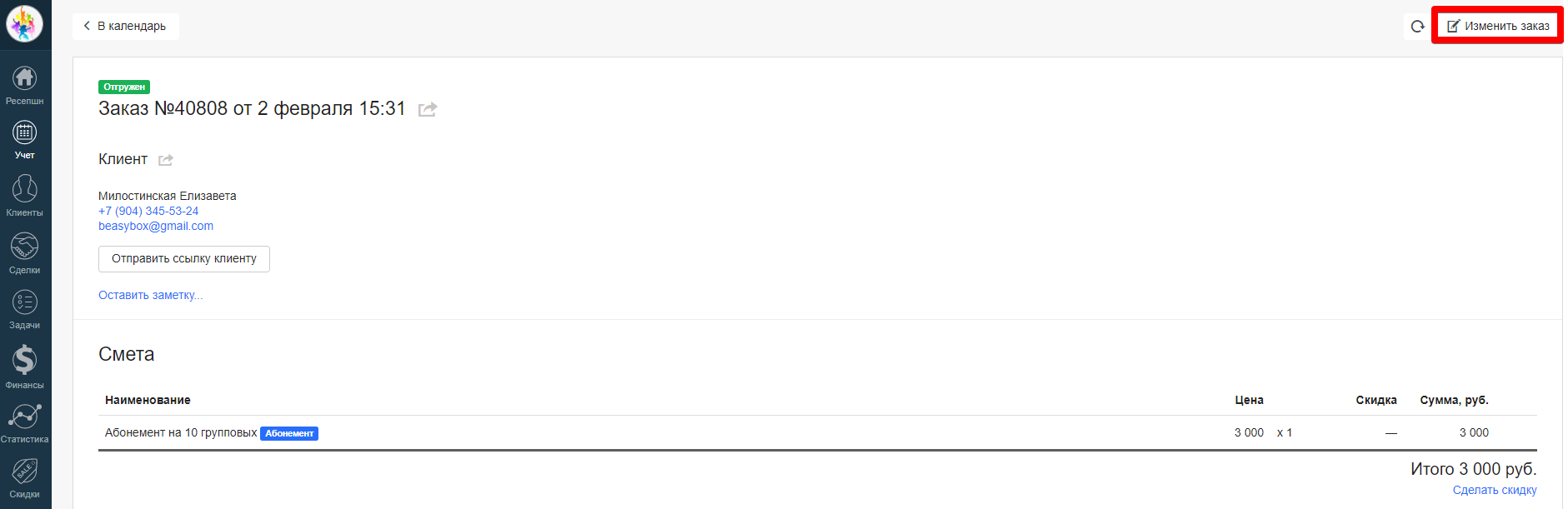 Шаг 1. Откройте карточку заказа.