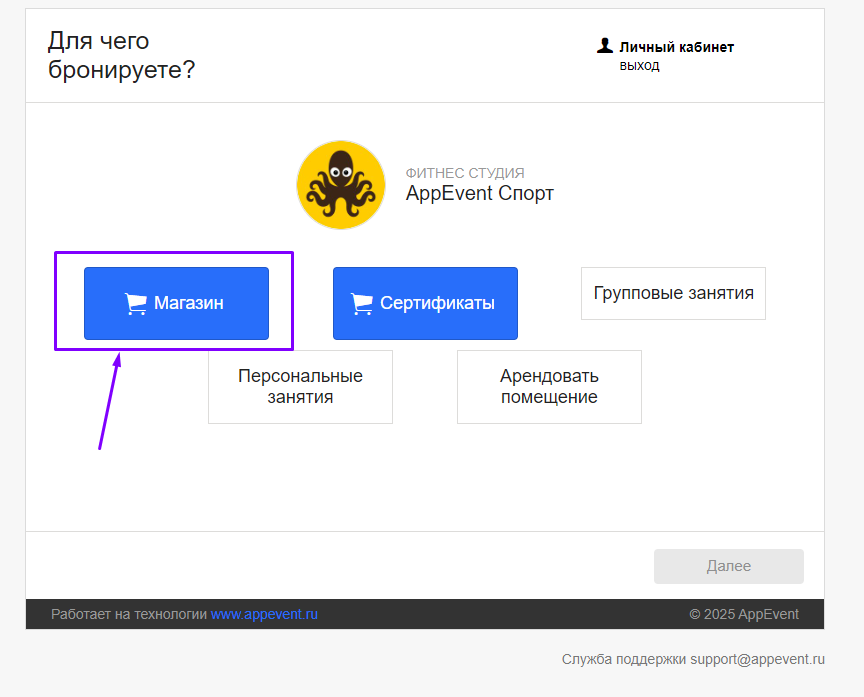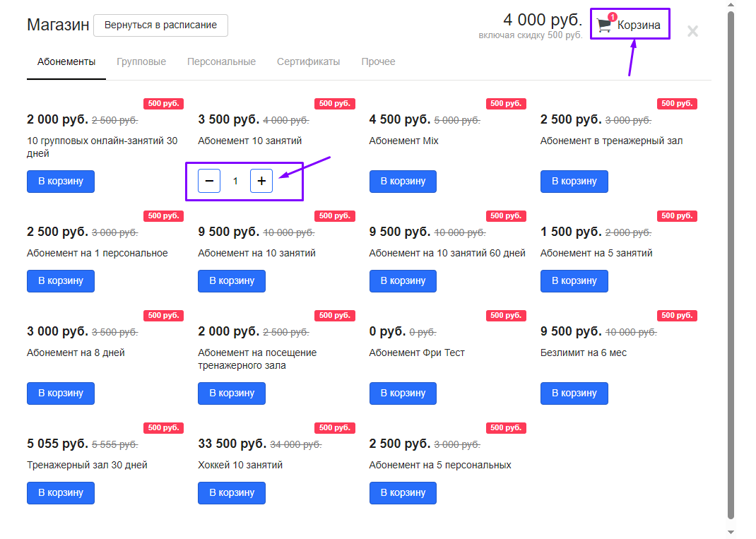 Магазин в виджете — это раздел, где клиенты могут самостоятельно приобретать услуги, абонементы, товары и сертификаты. Функция позволяет автоматизировать продажи и принимать оплату онлайн без участия администратора.