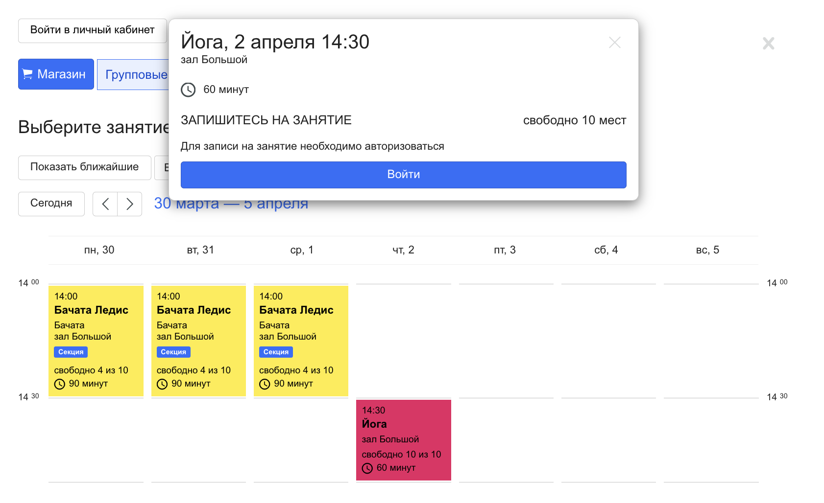 может сразу записаться на занятие.