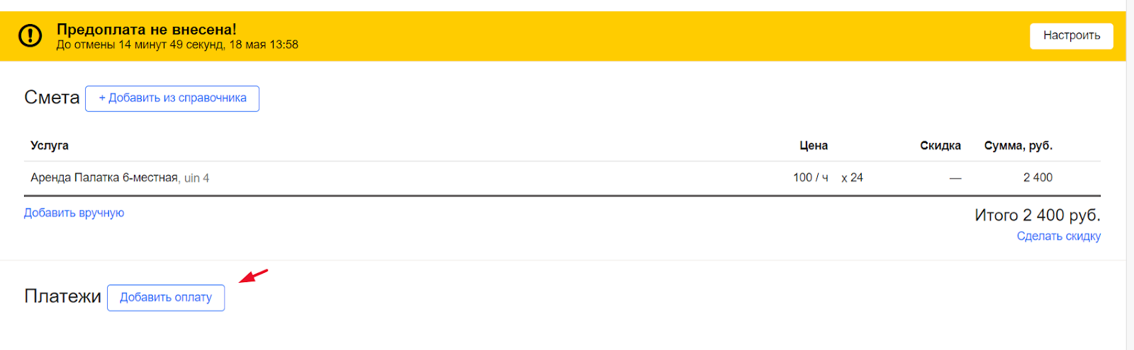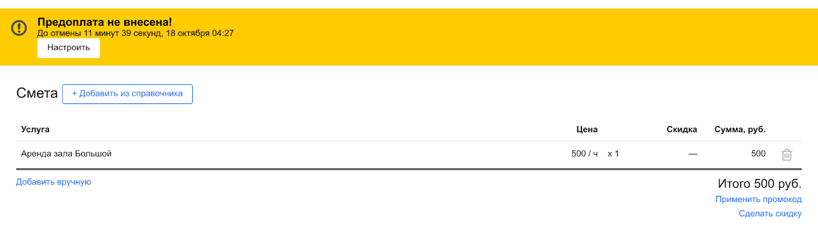 чтобы избежать отмены, необходимо внести оплату вручную или отправить клиенту ссылку на онлайн‑оплату.