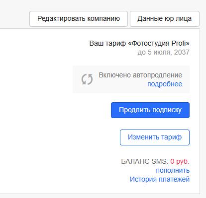 В разделе «Профиль компании» слева вверху будет отображаться «Автопродление».