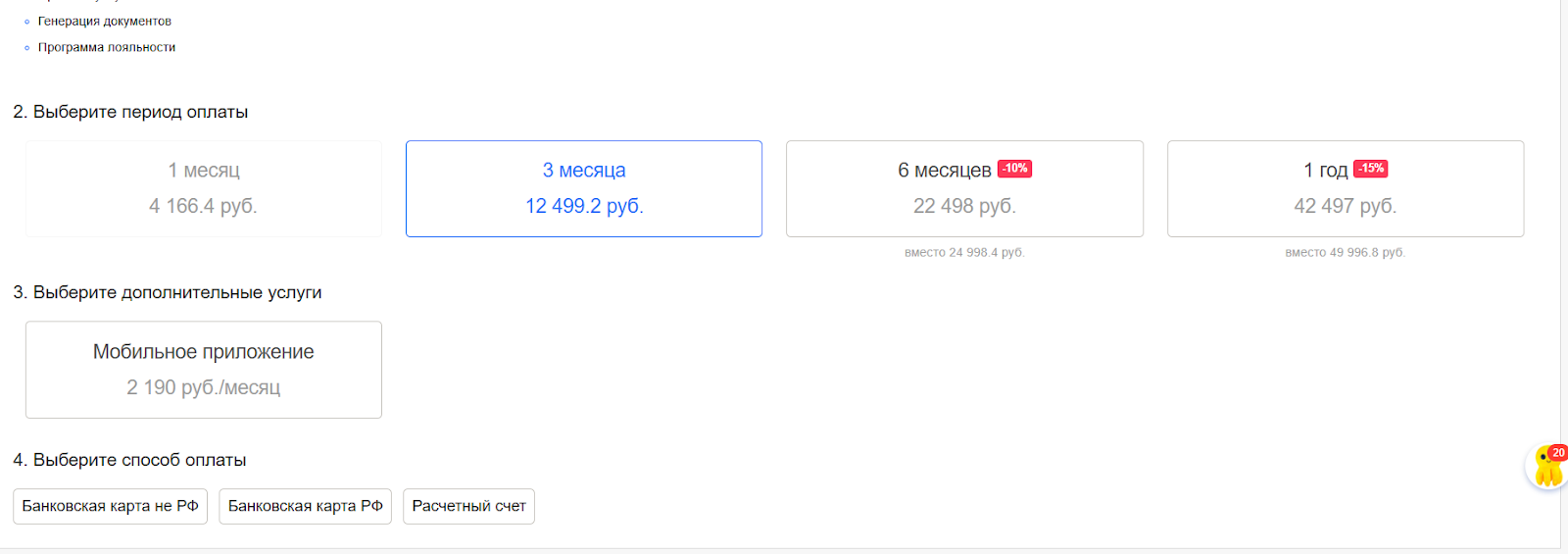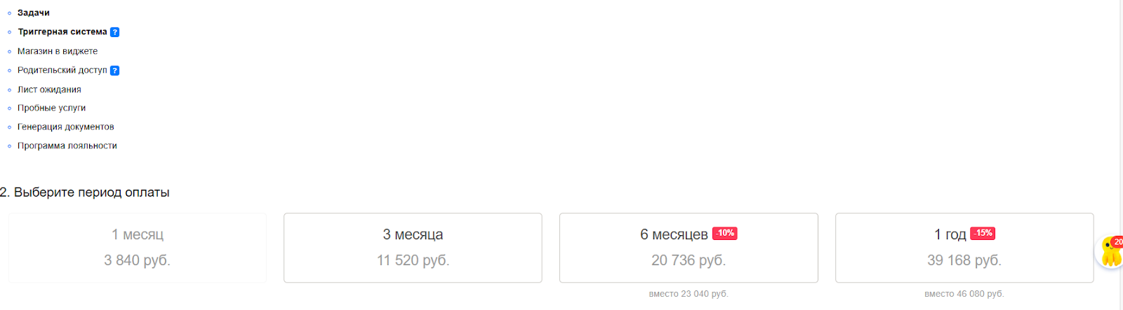 - Первый вид скидки, оплата системы на длительный срок на 6 или 12 месяцев.