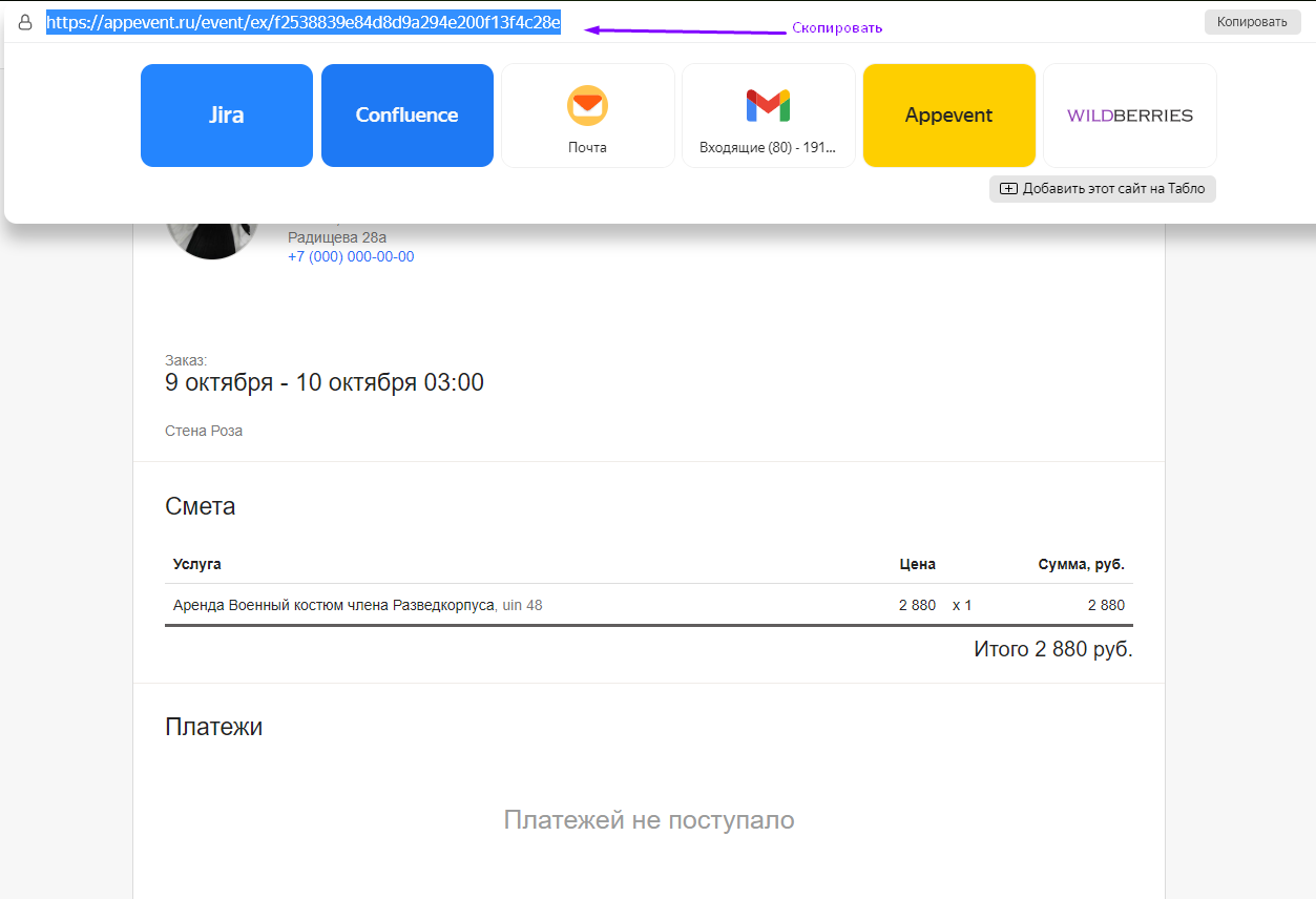 Вставьте скопированную ссылку в любое текстовое поле, чтобы отправить ее клиенту.