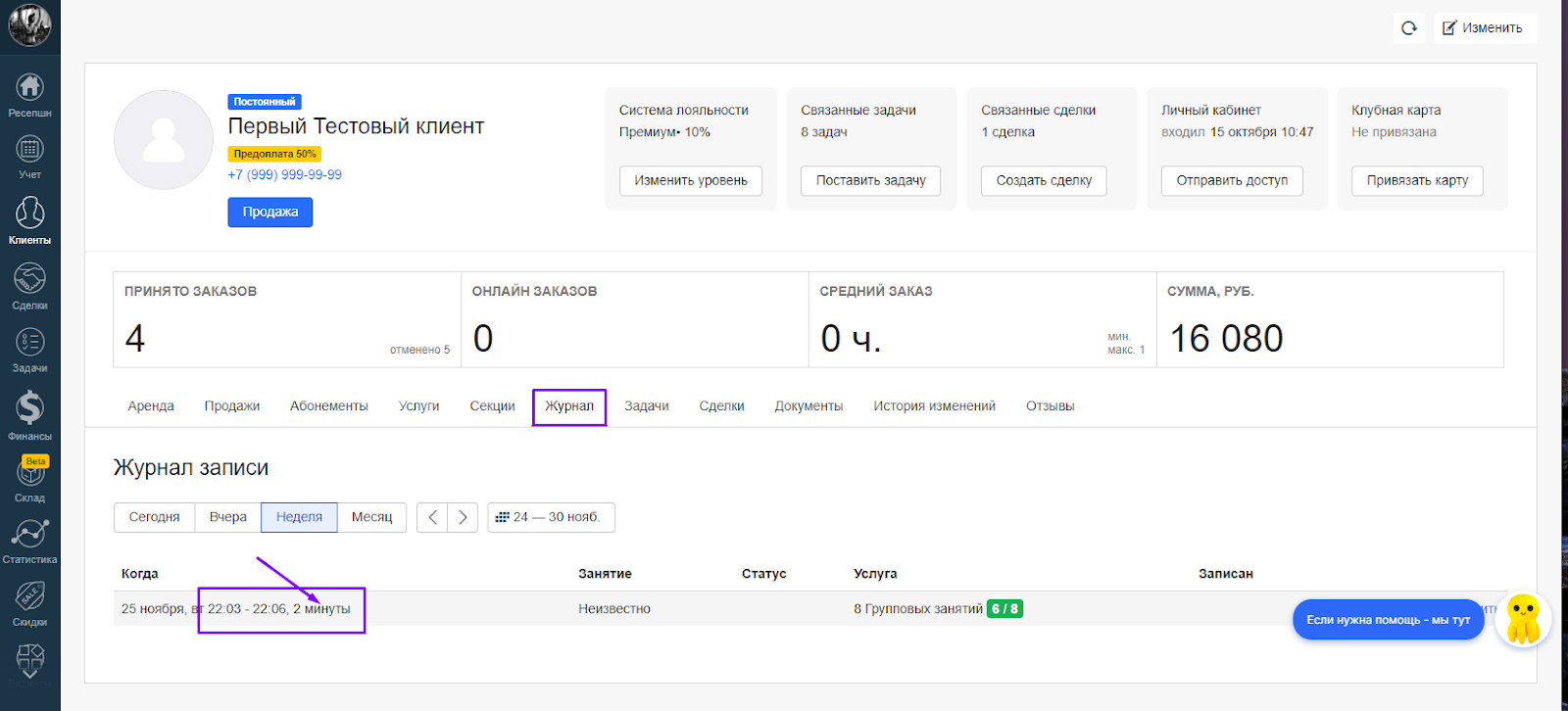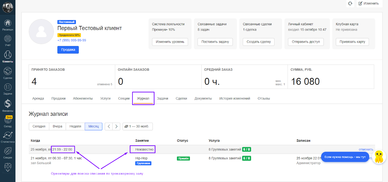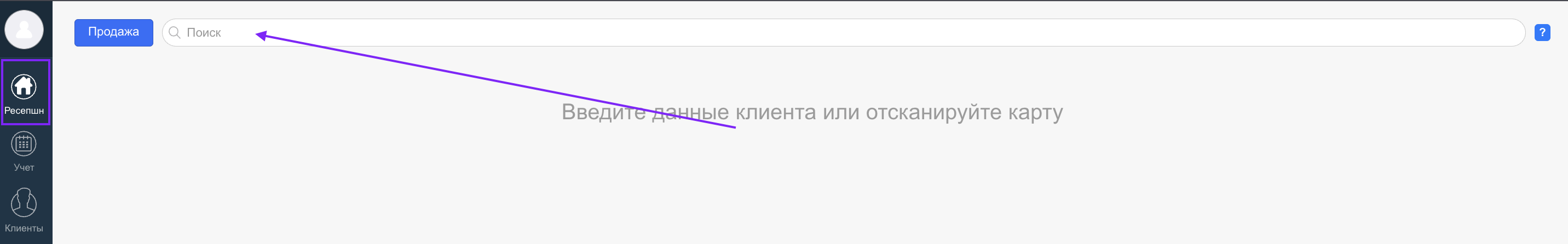 Перейдите в раздел «Ресепшен» и найдите клиента через поиск.